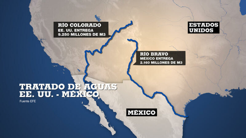 Le traité oblige les États-Unis à fournir chaque année 1,85 milliard de mètres cubes d’eau du fleuve Colorado (ouest) et le Mexique 432 millions de mètres cubes du Rio Bravo (est), appelé Rio Grande par les Américains. Mais le Mexique est largement en retard sur ses engagements et a cumulé un déficit de plus d’un milliard de mètres cubes sur les cinq dernières années, accuse Washington.